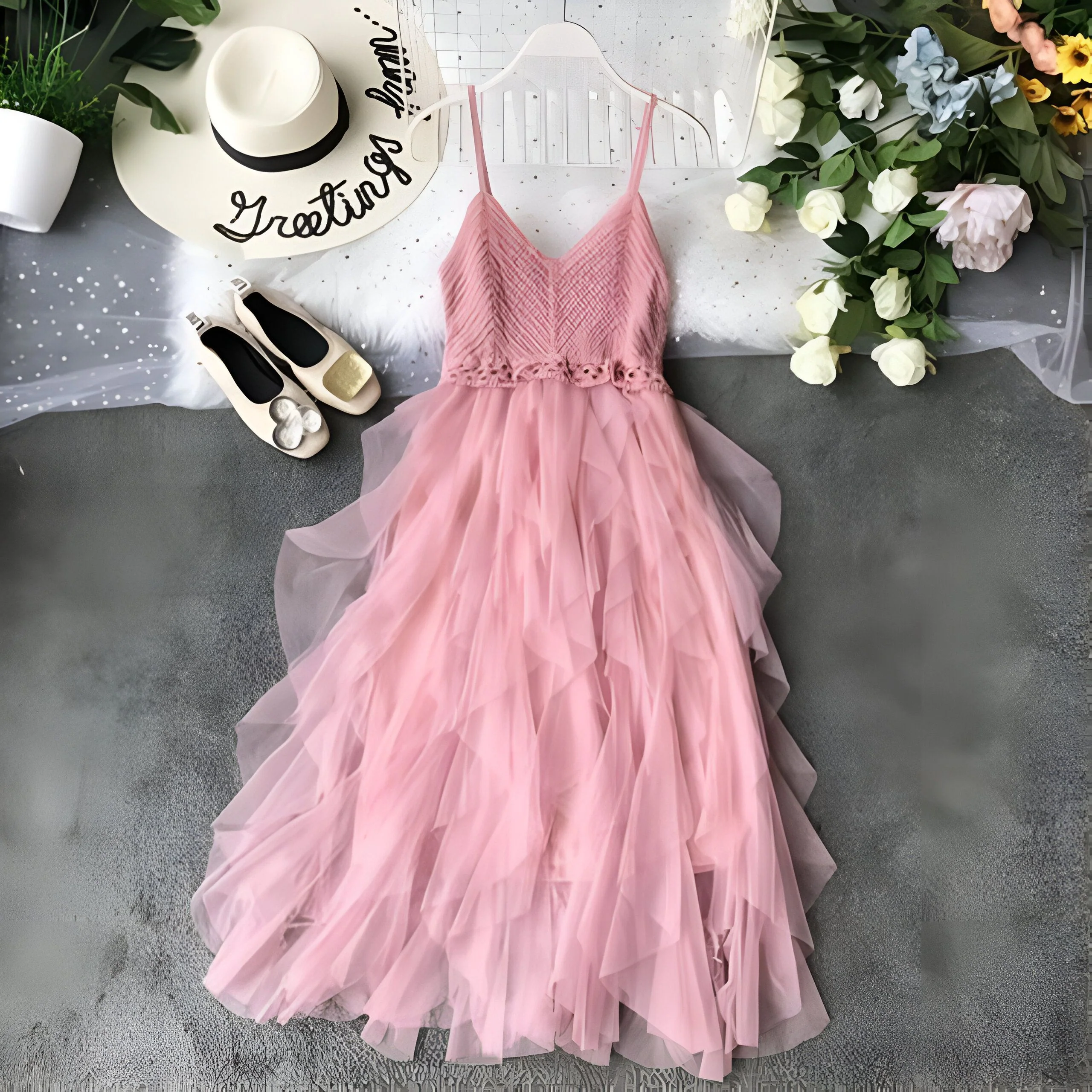 Robe longue en tulle rose – Style bohème chic : Une robe longue, légère et fluide en tulle rose, parfaite pour un style bohème chic, mettant en valeur votre silhouette avec grâce et élégance. Son design unique la rend idéale pour toutes les occasions spéciales.