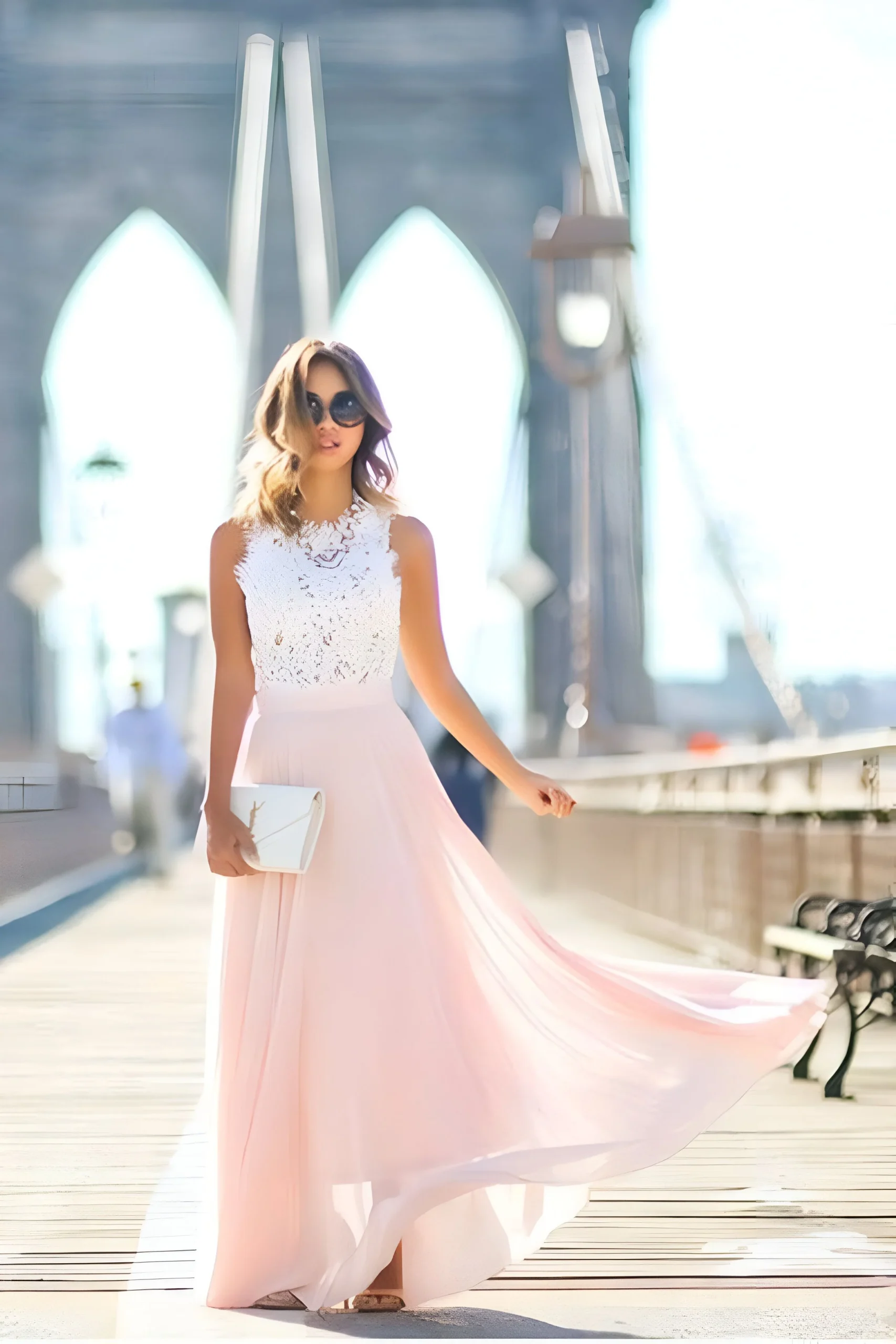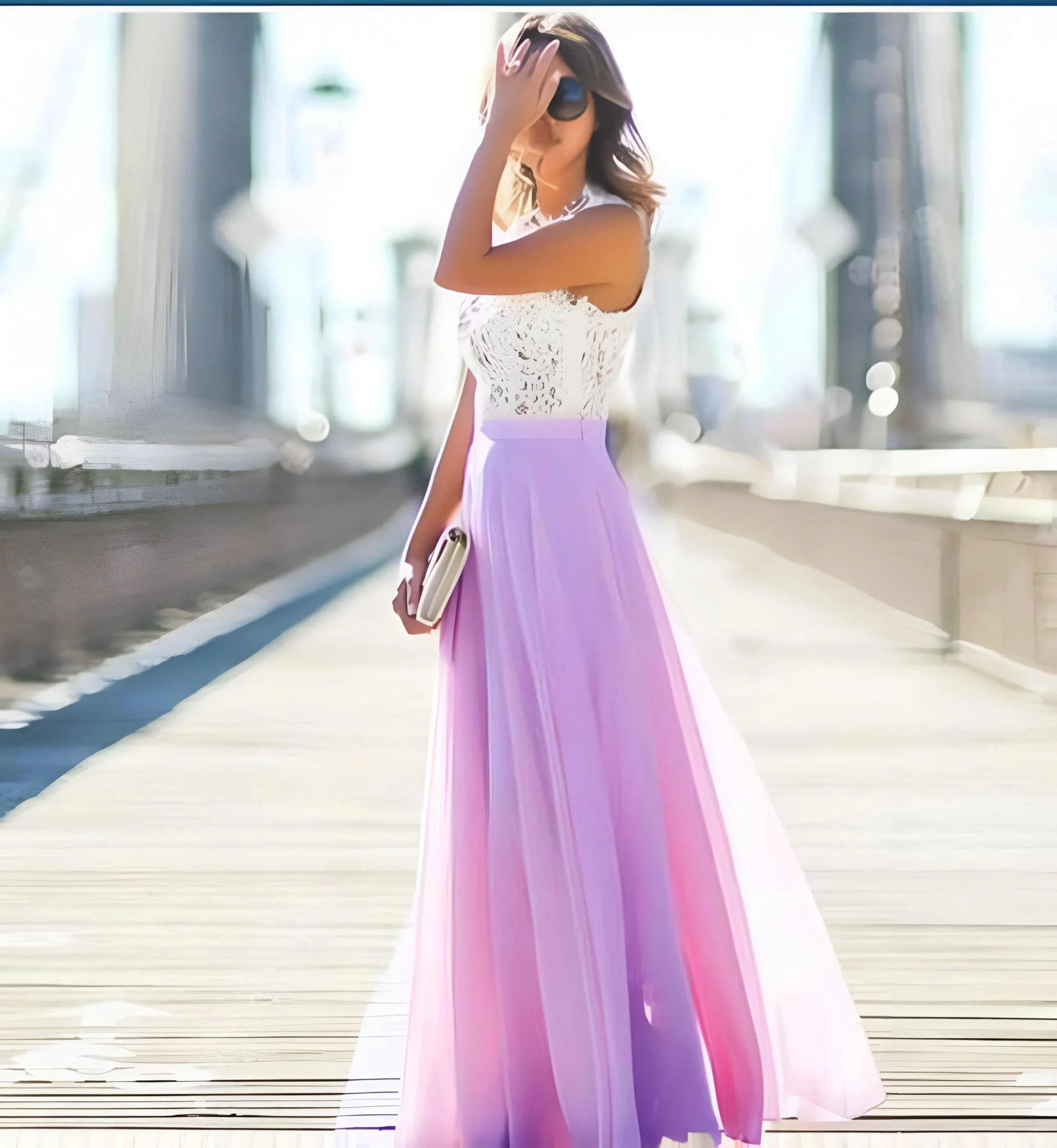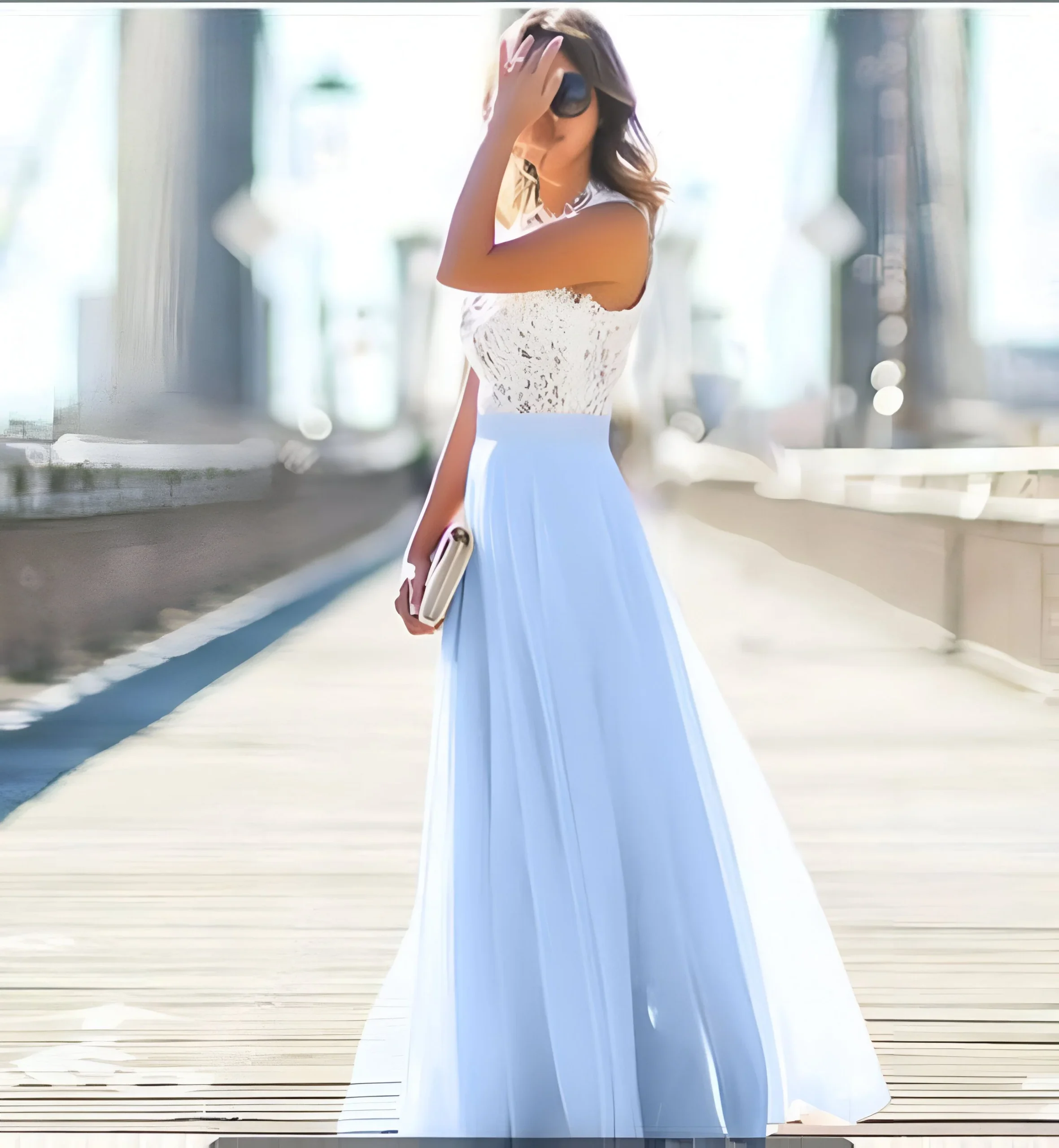 Imaginez-vous, rayonnante, dans cette robe longue qui sublime votre féminité. Le délicat jeu de matières, entre la douceur de la mousseline et la finesse de la dentelle, crée un contraste raffiné qui attire le regard. Le tombé fluide de la jupe accentue la grâce de votre allure, vous conférant une élégance subtile et intemporelle. Vous vous sentirez belle, sûre de vous, prête à briller.