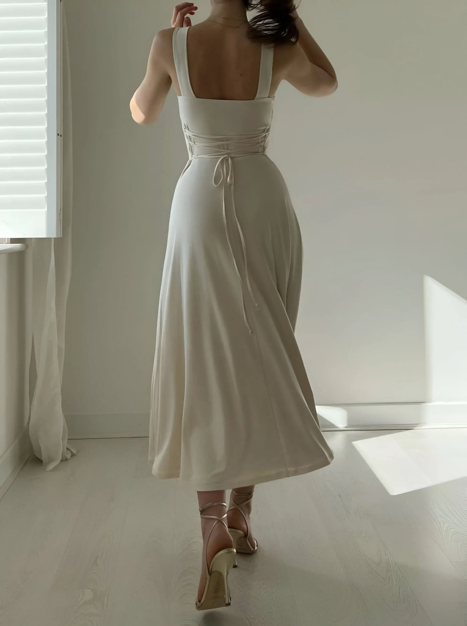 Le secret de son confort réside aussi dans sa coupe parfaitement étudiée. La taille style corset, cintrée et ajustée, souligne la silhouette avec élégance, sans jamais être contraignante. Que vous soyez mince ou pulpeuse, cette robe sublime vos atouts. Le col carré, quant à lui, apporte une touche de modernité et de sophistication.