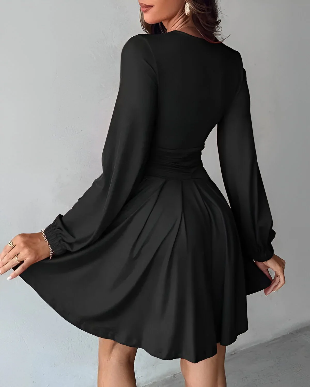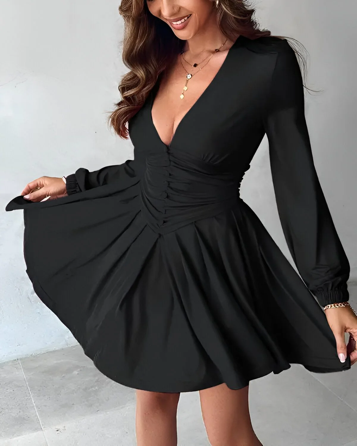 Plongez dans l’élégance intemporelle de cette robe plongeante froncée à manches lanternes. Spécialement conçue pour la femme moderne, elle incarne un style chic et raffiné, parfait en toute occasion. Sa silhouette flatteuse de type « une ligne » épouse gracieusement les courbes du corps, tandis que sa composition en mélange de 95 % de polyester et de 5 % d’élasthanne allie confort et élégance. Son décolleté plongeant et ses manches longues lanternes ajoutent une touche de glamour contemporain, et sa longueur mini assure une allure moderne et dynamique.