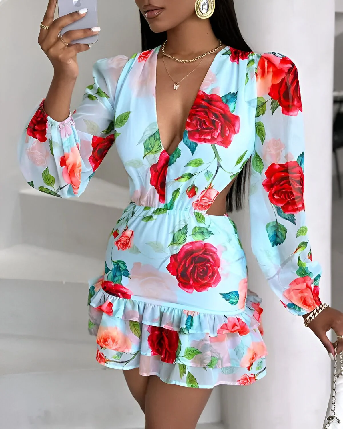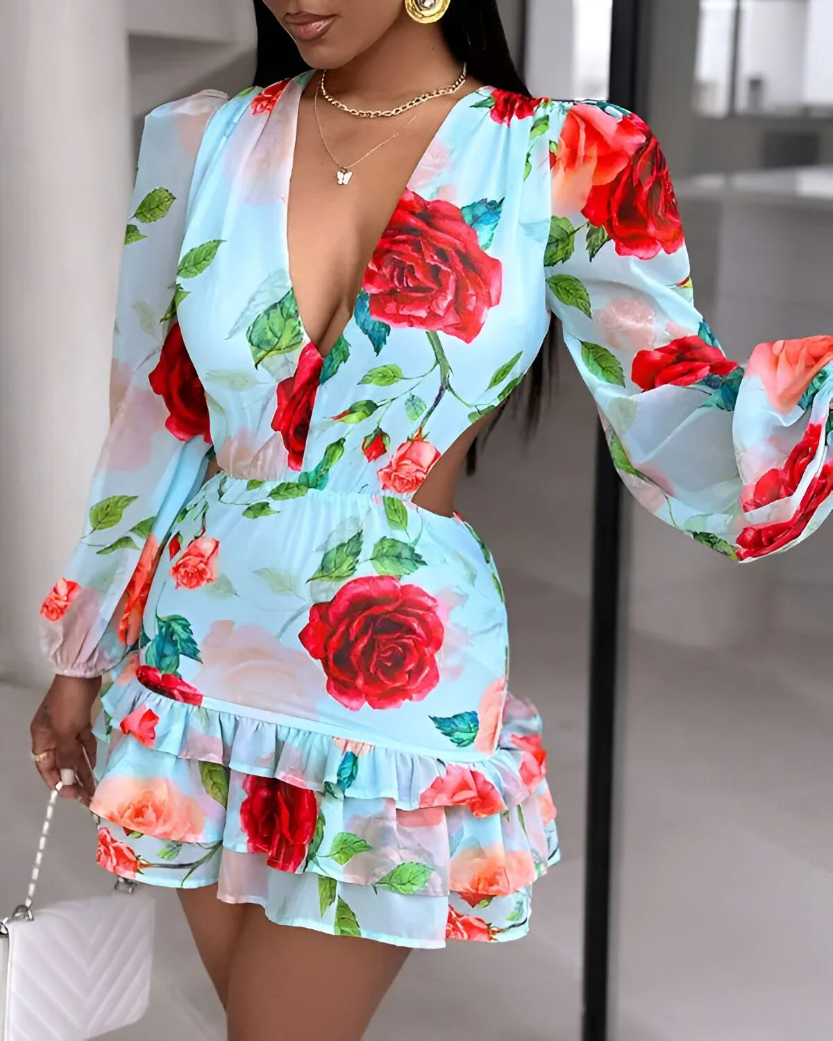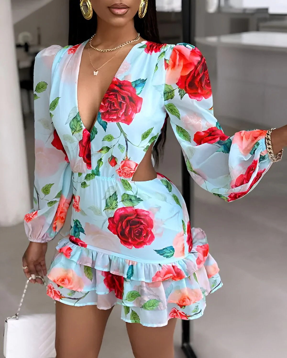 Robe superposée à volants et imprimé floral – Laissez-vous séduire par l’alliance parfaite entre chic et confort qu’offre cette robe exceptionnelle. Sa coupe droite et sa composition en 100 % polyester en font une pièce incontournable de votre garde-robe. Son décolleté plongeant apporte une touche de séduction, tandis que ses manches longues et sa longueur mini lui confèrent une élégance intemporelle. Le motif floral ainsi que les détails creux et les volants ajoutent une note de féminité audacieuse.