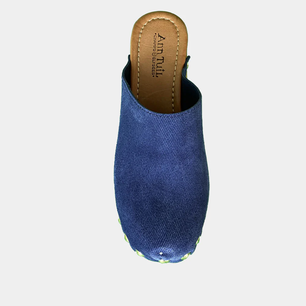 Pile dans la tendance denim du moment, nos sabots à talons Ann Tuil modèle Sweet se parent d’un joli velours imprimé jean bleu. Ce sabot apportera à votre look une touche tendance et moderne. Découvrez toute la collection de chaussures Ann Tuil.