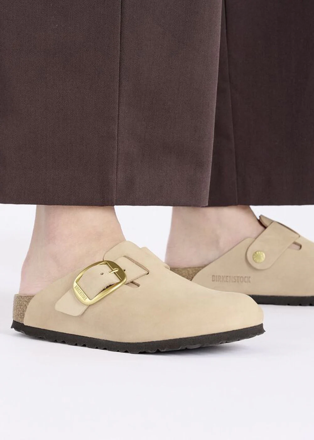 Grand classique BIRKENSTOCK, le sabot Boston se porte en toute saison. Le modèle se présente ici dans une version Big Buckle, munie d’une grande et élégante boucle ardillon qui apporte un cachet supplémentaire à cette sandale d’ordinaire plus sobre. Sa tige se compose d’un cuir nubuck doux haut de gamme au look rustique et naturel séduisant.