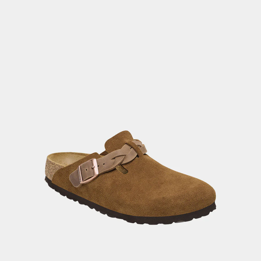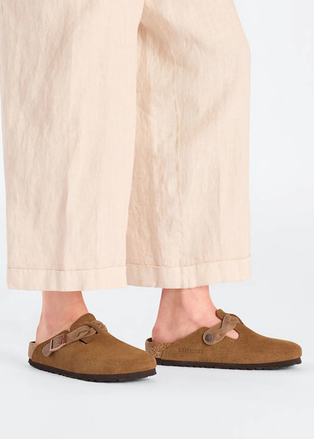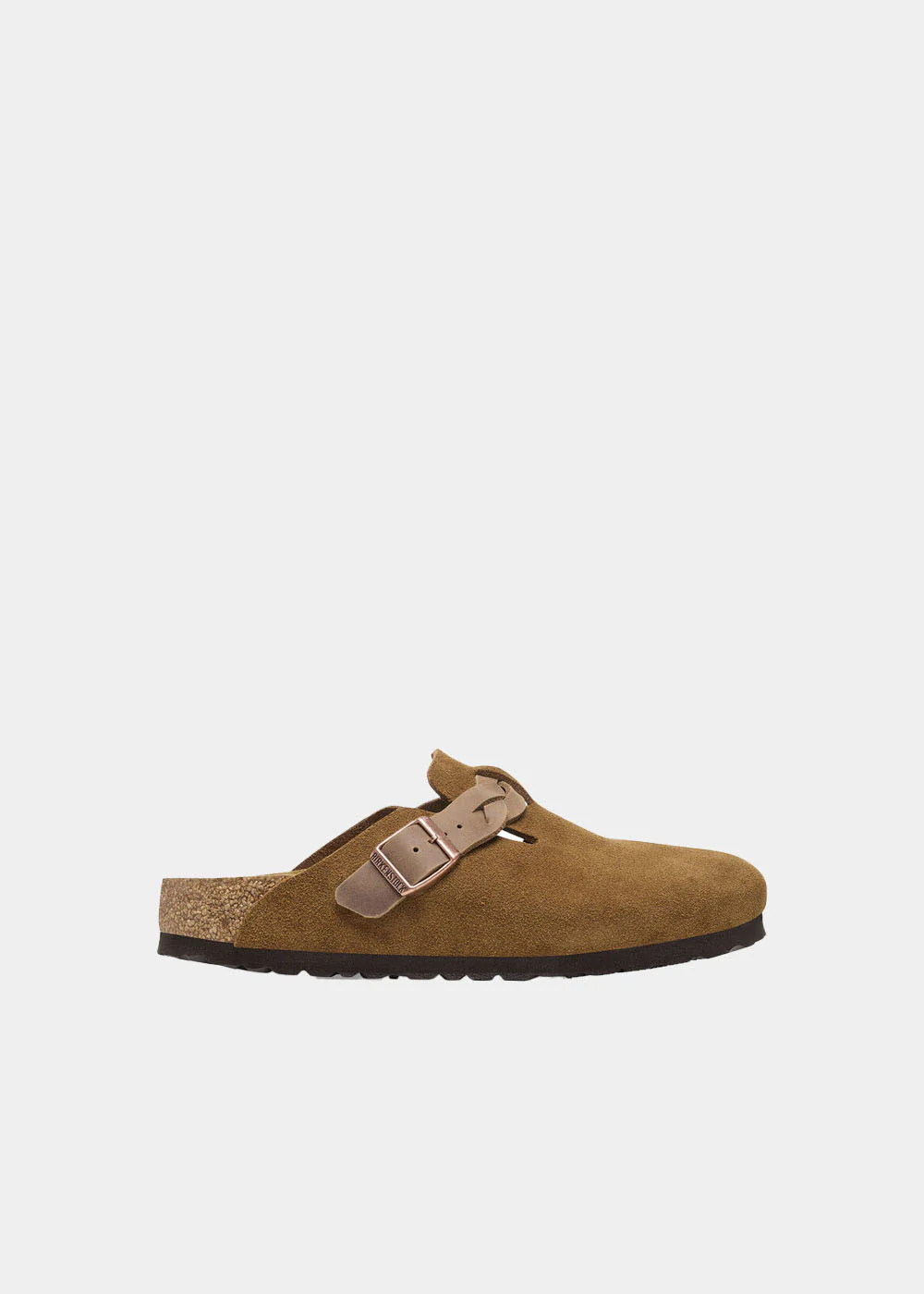 Grand classique BIRKENSTOCK, le sabot Boston se porte en toute saison. Avec son design raffiné et sa largeur réglable individuellement, le sabot Boston figure parmi les produits cultes de la marque. Cette chaussure arbore ici un détail particulier : des brides tressées, qui se marient parfaitement à un style bohème actuel. Sa tige a été confectionnée dans un cuir velours particulièrement doux qui drape le pied comme une seconde peau.