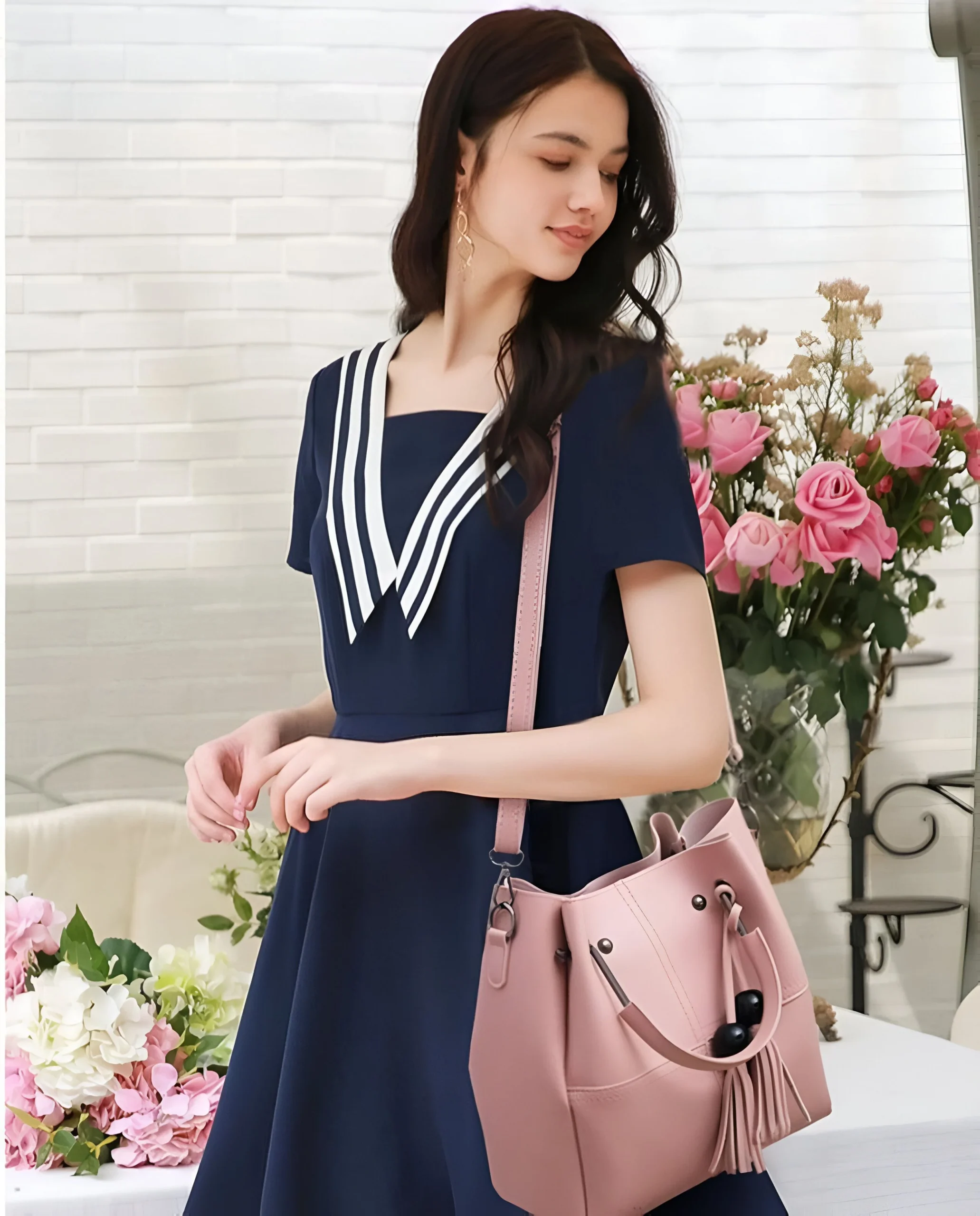 Imaginez : vous sortez pour une soirée spéciale. Vous avez besoin d’un sac élégant et suffisamment grand pour contenir votre téléphone, votre portefeuille et vos clés. Notre sac à main principal répond parfaitement à cette exigence, avec son design sophistiqué et sa capacité idéale. Mais que faire si vous préférez un look plus décontracté pour une journée shopping ? La pochette à bandoulière, compacte et pratique, vous accompagnera parfaitement. Et pour les sorties plus légères, le porte-cartes vous permettra de transporter l’essentiel de manière discrète et sécurisée. Ce trio de sacs, c’est l’assurance d’être parfaitement équipée pour toutes les situations.