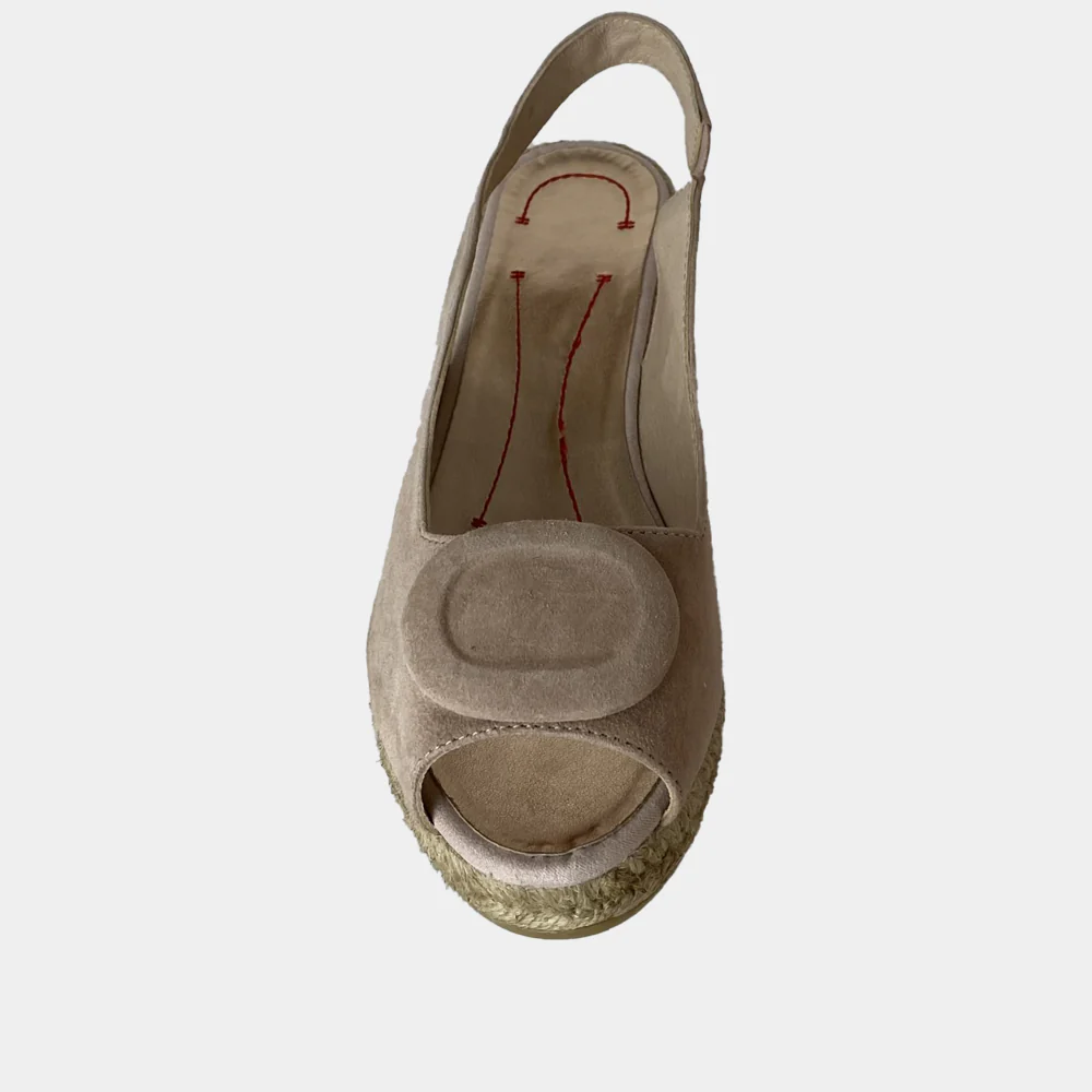 Confortables et casual, les sandales compensées Ann Tuil Geste-Joplin en velours nude sont idéales pour cet été. Découvrez toute la collection de chaussures Ann Tuil.