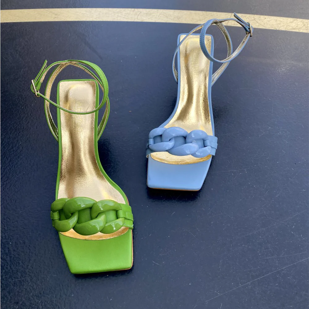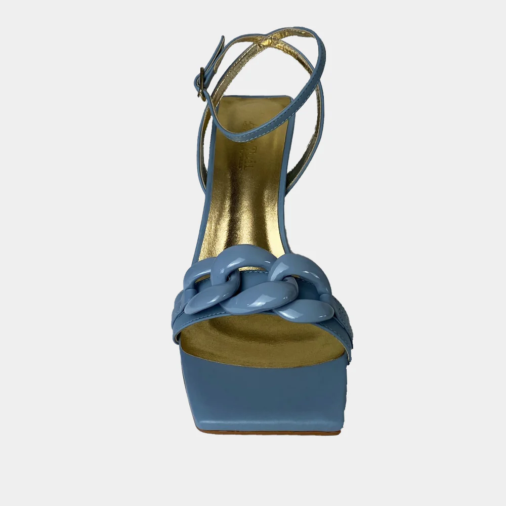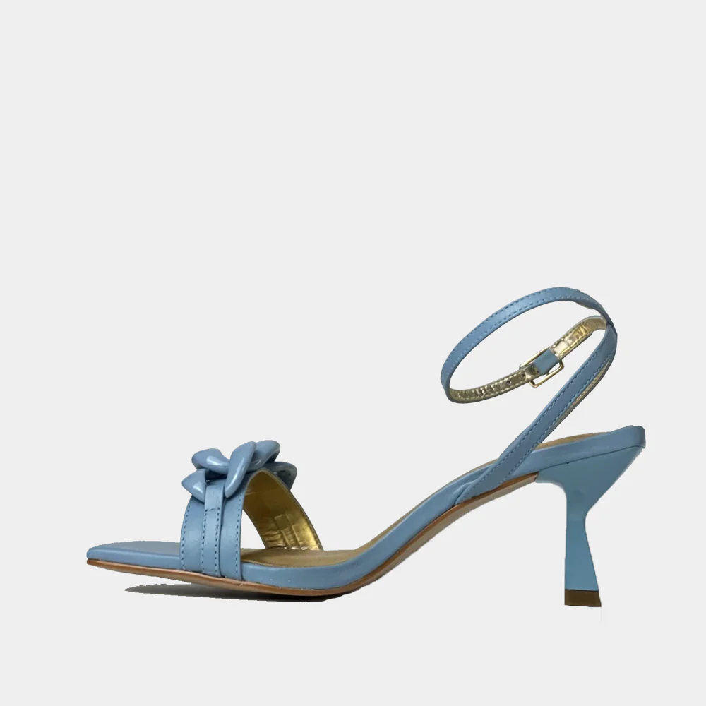 Les sandales à talons Ann Tuil modèle Magie en cuir bleu ciel sont à la pointe de la mode grâce à sa chaine ton sur ton et son talon bobine. Découvrez toute la collection de chaussures sur Ann Tuil.