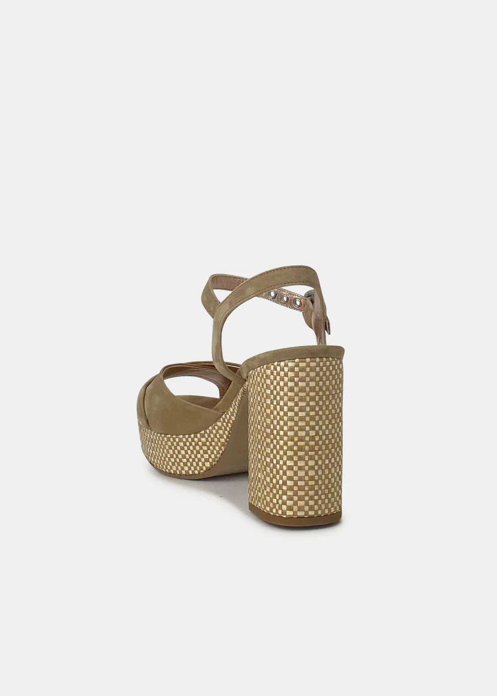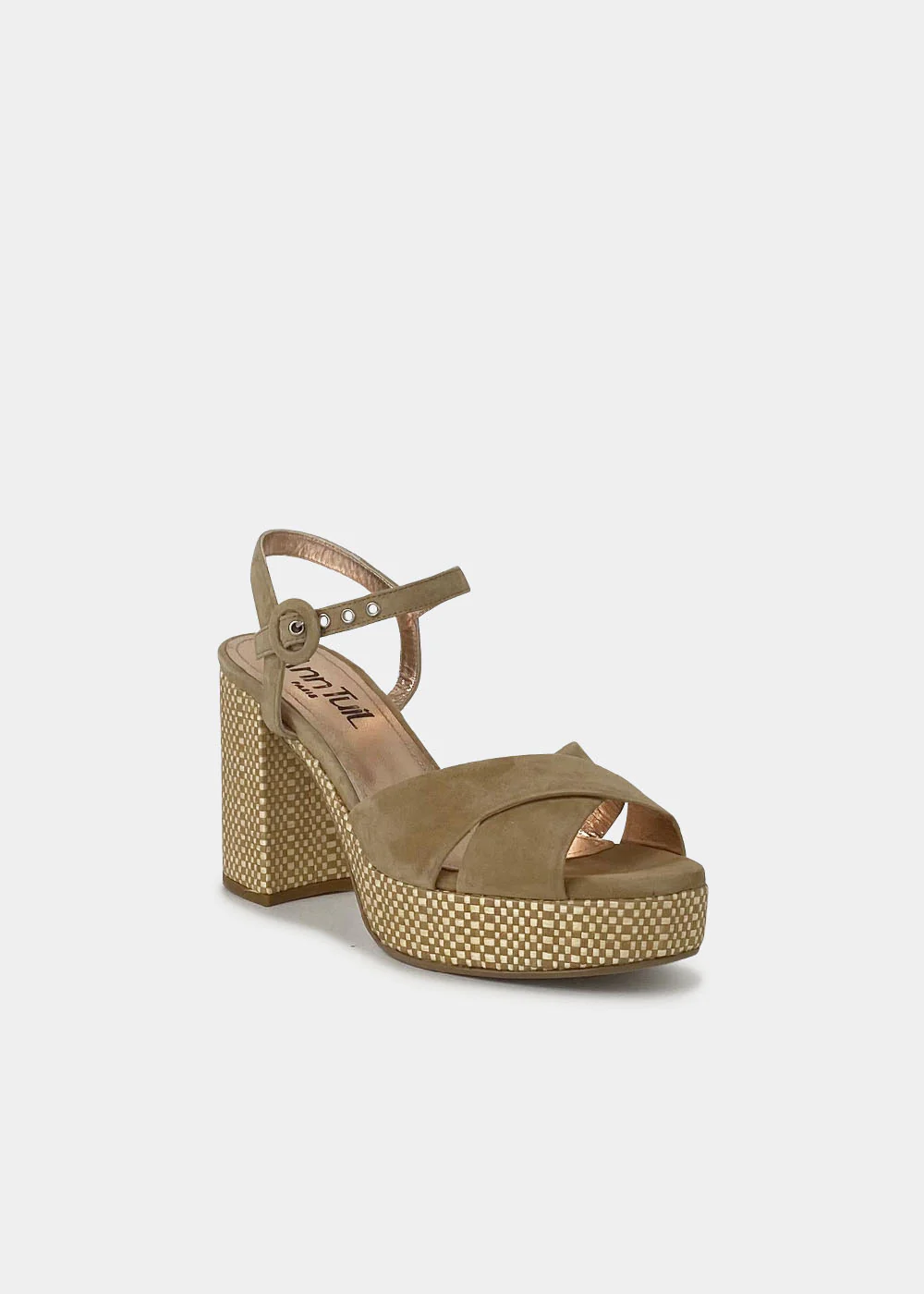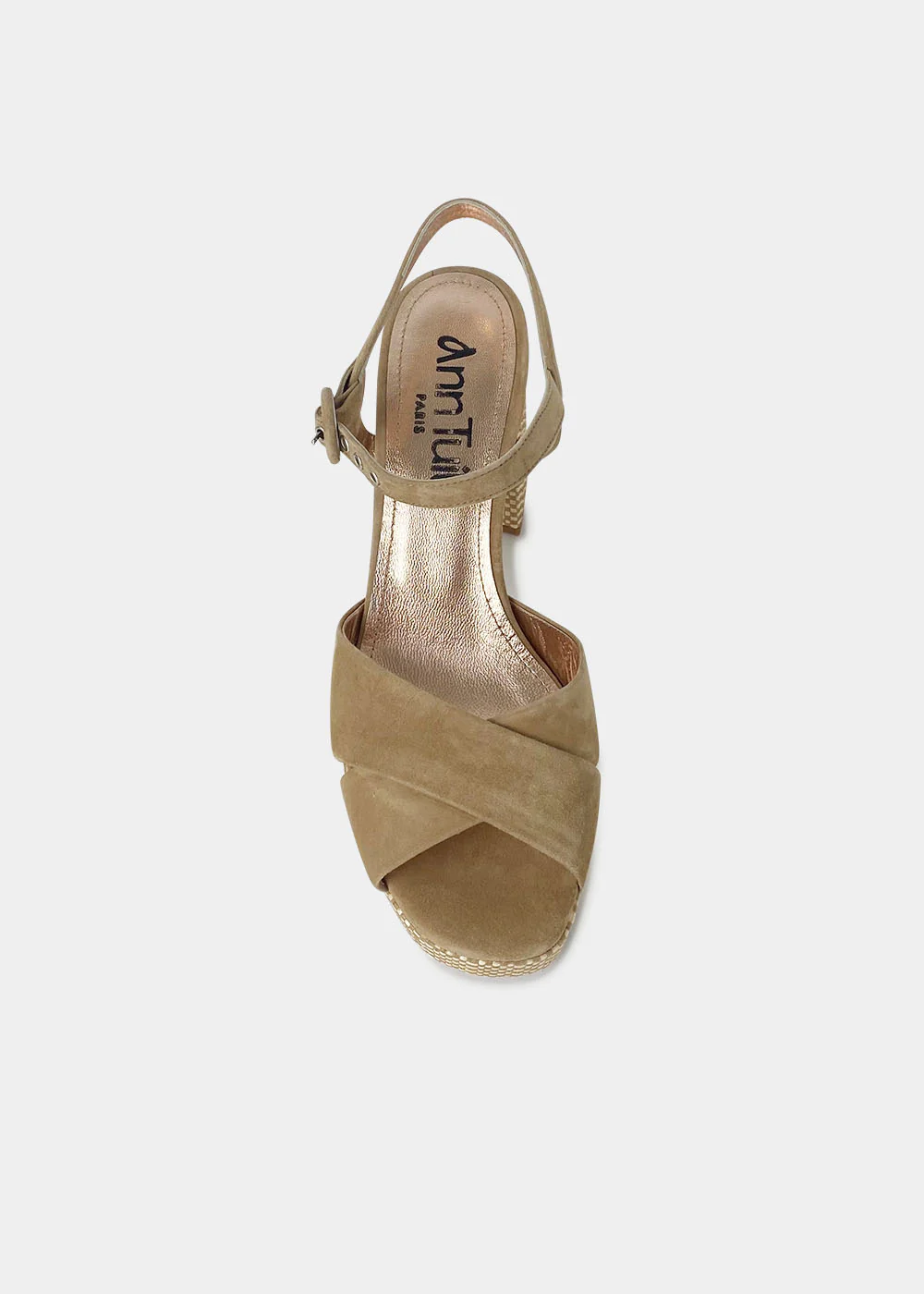 Les sandales à talon Ann Tuil Majesté sont élégantes et confortables. Le velours offre une texture riche et délicate qui, combinée à la couleur beige subtile, crée un look à la fois raffiné et intemporel. La plateforme à l’avant assure un confort optimal tout au long de la journée. Vous pouvez les porter aussi bien avec une robe de soirée élégante, qu’un ensemble plus décontracté, comme un pantalon fluide ou une jupe midi.