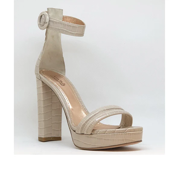 Laissez-vous séduire par les sandales Ann Tuil Majuscule en cuir effet croco nude, idéales pour l’été et affiner votre silhouette. Découvrez toute la collection de chaussures sur Ann Tuil.