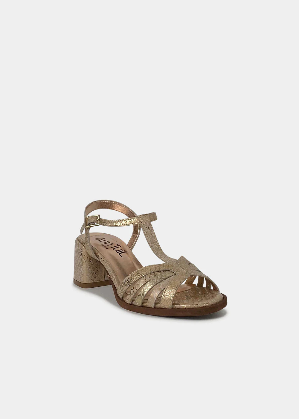 Les sandales à talons Ann Tuil Mylan combinent élégance et confort. Fabriquées en cuir avec un imprimé serpent audacieux, ces sandales arborent une teinte beige doré qui ajoutera une note de raffinement à vos tenues. Le petit talon offre un équilibre parfait entre confort et féminité, vous permettant de les porter toute la journée sans compromis. La fermeture par bride garantit un maintien optimal du pied, tandis que la couleur intemporelle permet de les associer aussi bien à des tenues de jour qu’à des looks plus habillés pour vos soirées.