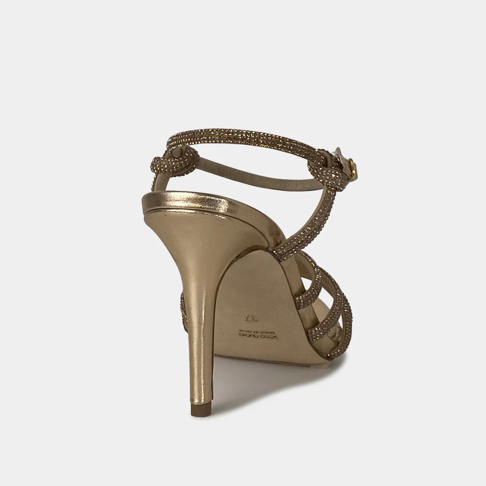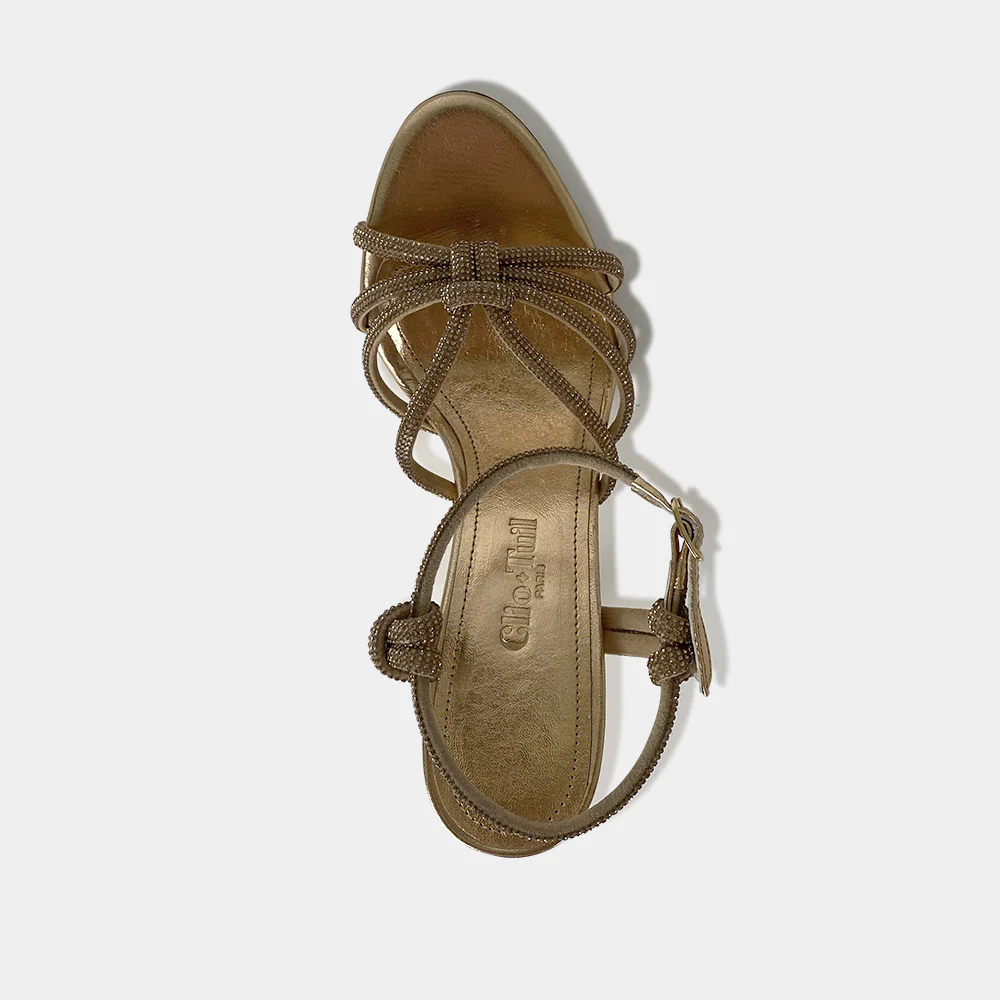 Féminine, sensuelle et élégante, la sandale à talon Clio Tuil Madeleine en cuir métallisé et strass bronze est parfaite pour briller lors de vos événements festifs ou soirées. Découvrez toute la collection de chaussures Clio Tuil sur Ann Tuil.
