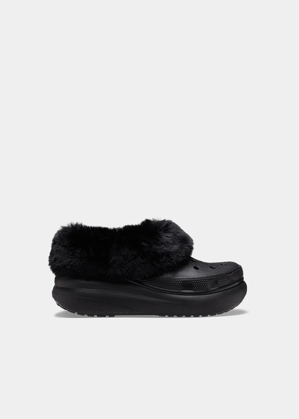 Le Crush de chez Crocs revient dans une version chaude avec le Furever Crush en PVC noir. Avec sa doublure et son col en peau lainée synthétique, un talon surélevé et le design audacieux caractéristique de la collection Crush, vous pourrez la personnaliser à votre guise.