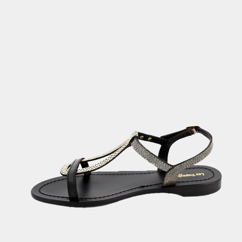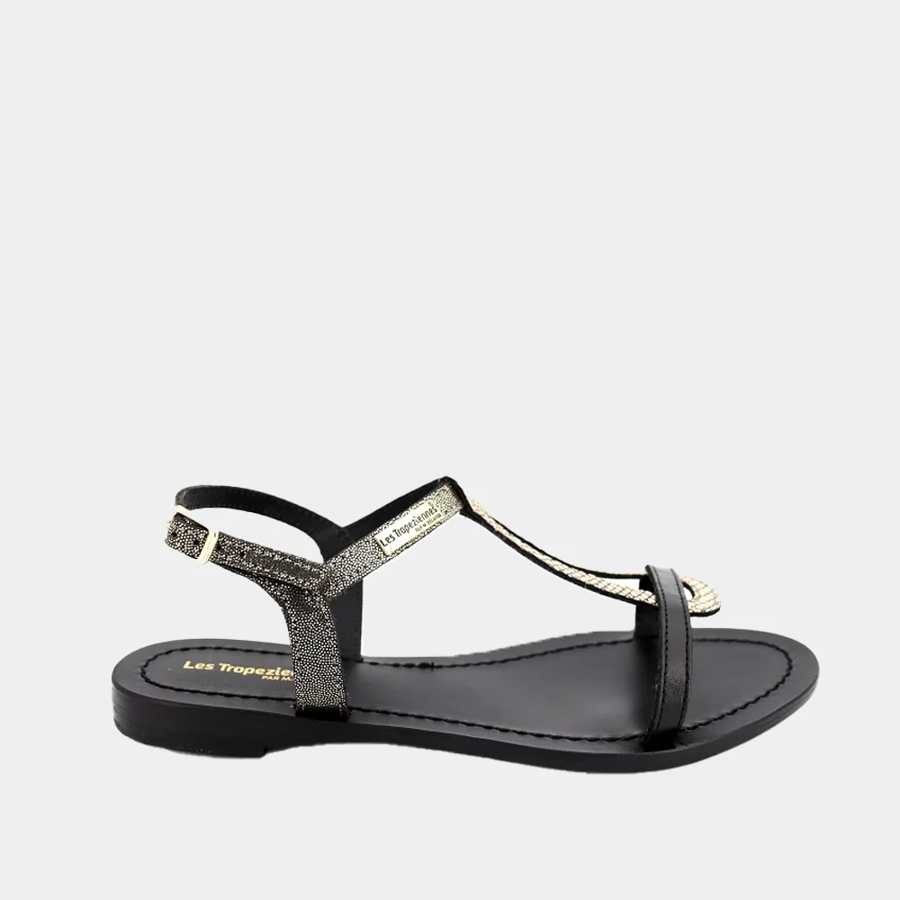 Les Tropéziennes revient cette saison avec des chaussures femme toujours plus tendances. Les sandales Hamablak en cuir noir/or raviront toutes les addicts de la marque. Découvrez toute la collection de chaussures Les Tropéziennes sur Ann Tuil.
