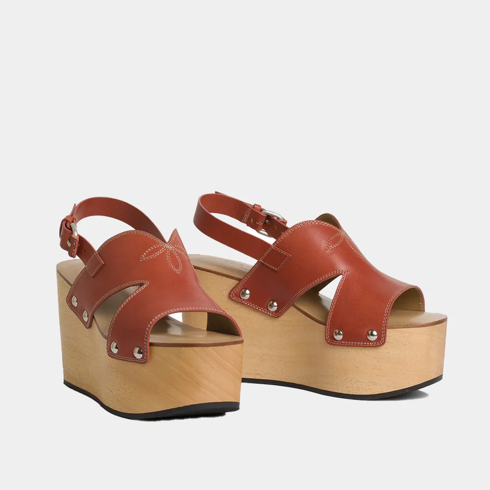 La marque de chaussures de luxe Sartore vous propose des chaussures fabriqués de façon artisanale, comme ces sandales compensées du modèle SR433003 en cuir camel. Découvrez toute la collection de chaussures Sartore sur Ann Tuil.