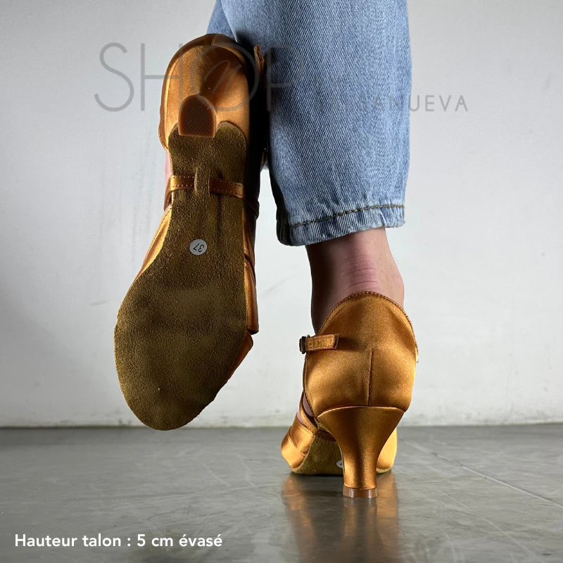 Avec notre paire de chaussures de danses latines Satin Bronze, chaque pas devient une déclaration de style. Sublimez vos performances avec cette pièce incontournable, disponible chez SalsaNueva Shop, pour briller lors de vos cours ou en soirée.
