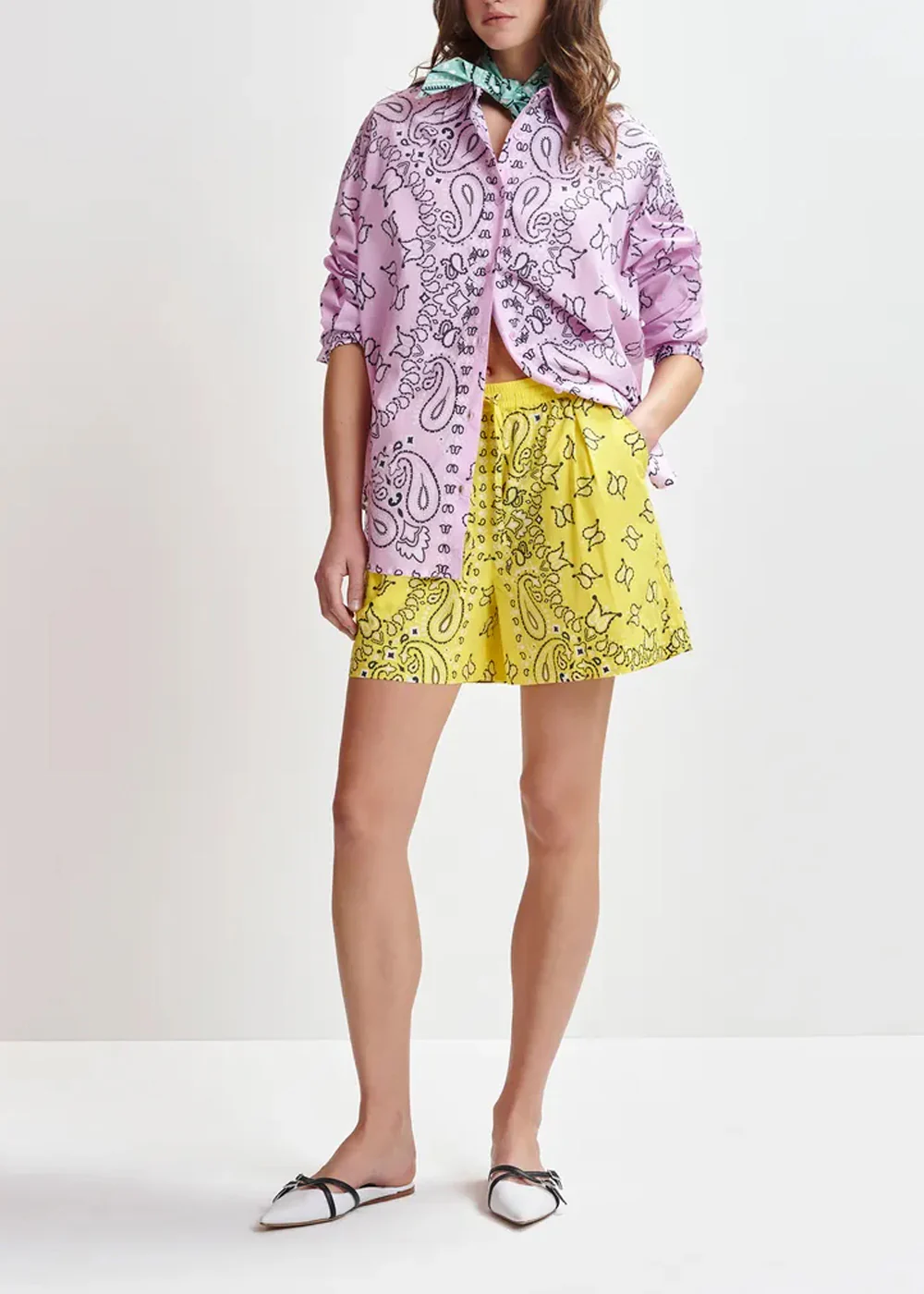Short réalisé en 100 % coton dans une coupe décontractée à taille haute. La taille élastique avec cordon de serrage vous garantit la coupe parfaite, tandis que les poches italiennes ajoutent une fonctionnalité pratique. L’imprimé bandana audacieux lui donne une allure joyeuse, idéale pour des sorties décontractées ou des moments de détente en style.