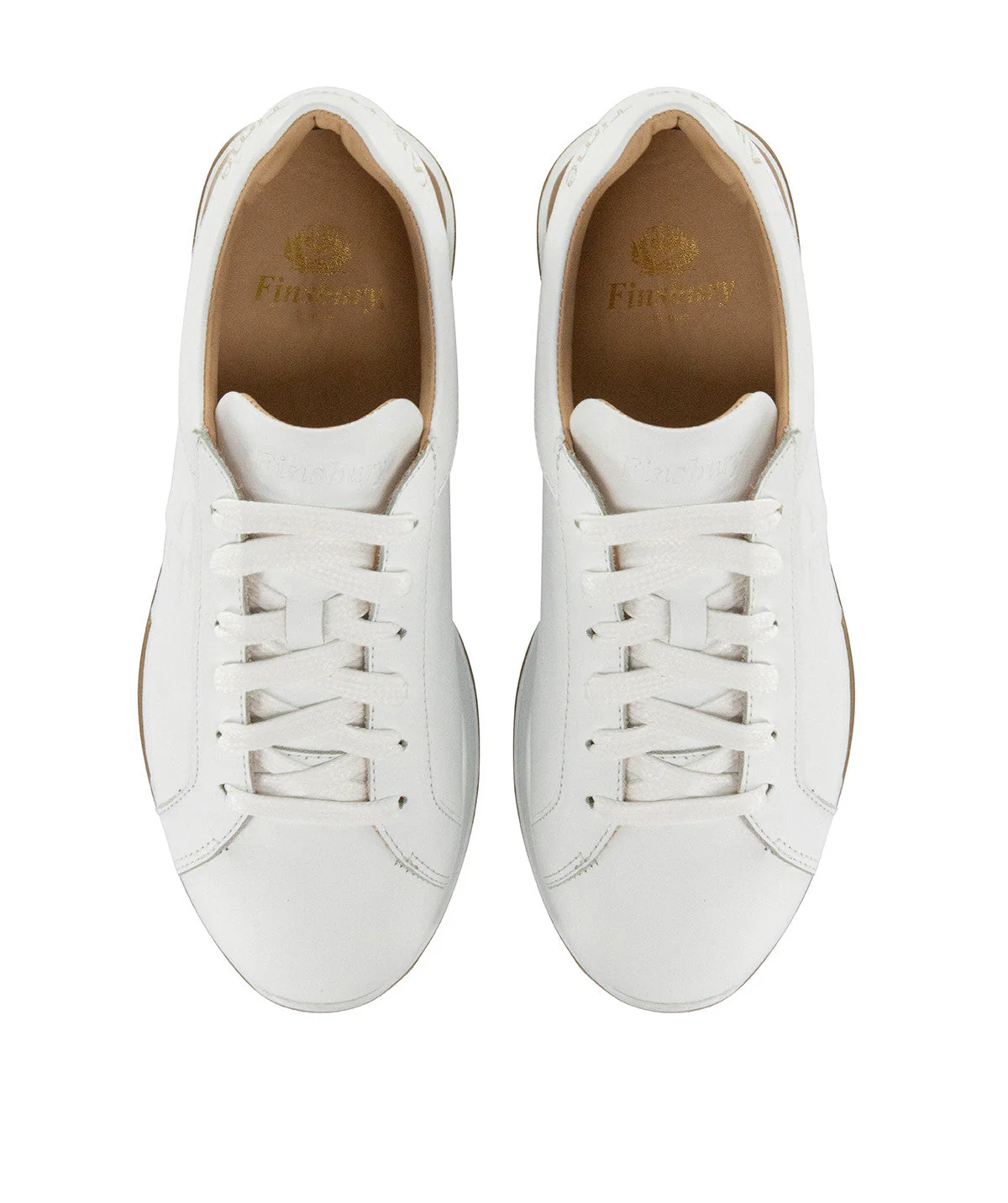 Découvrez la sneaker femme All The Time de Finsbury Woman, confectionnée en cuir haut de gamme et dotée d’une semelle en caoutchouc de qualité. Les emblématiques initiales F de Finsbury Woman sont délicatement gravées sur le cuir, accompagnées d’œillets et de lacets noirs contrastants. Associez confort et élégance avec cette sneaker au style chic sportif, parfaite pour affirmer votre allure en ville. Optez pour l’élégance décontractée avec la sneaker All The Time.