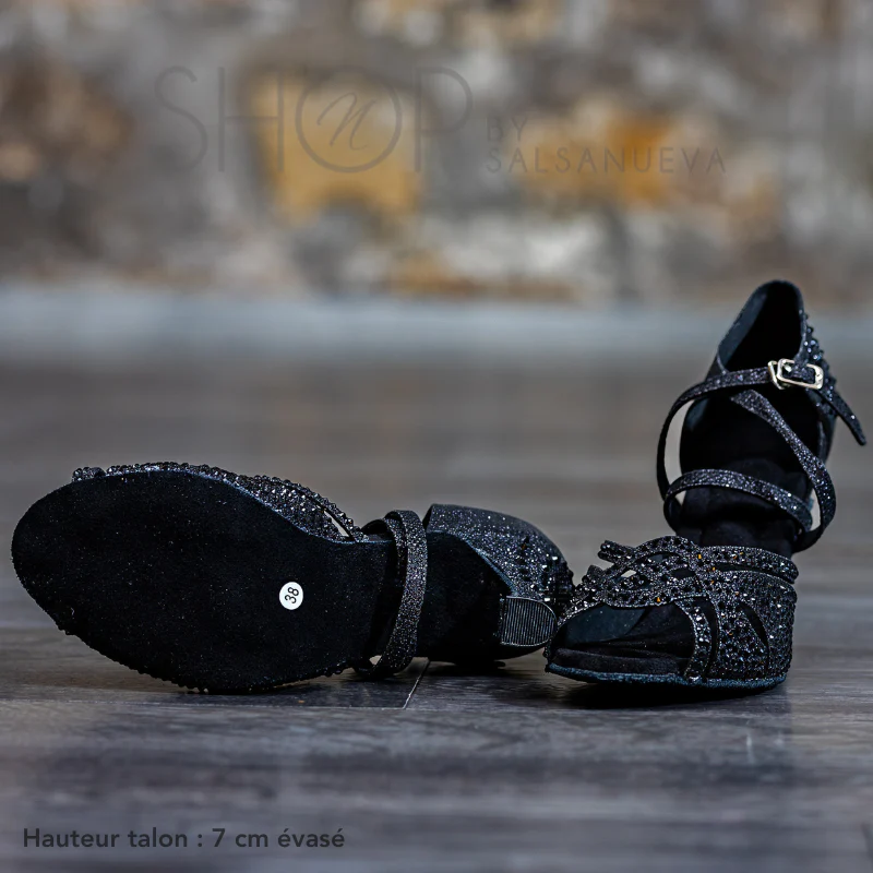 Plongez dans l’élégance de la nuit avec les Chaussures de Danses Latines Strass Nocturne de SalsaNueva, parfaites pour les amatrices de danse qui recherchent à la fois élégance et confort.