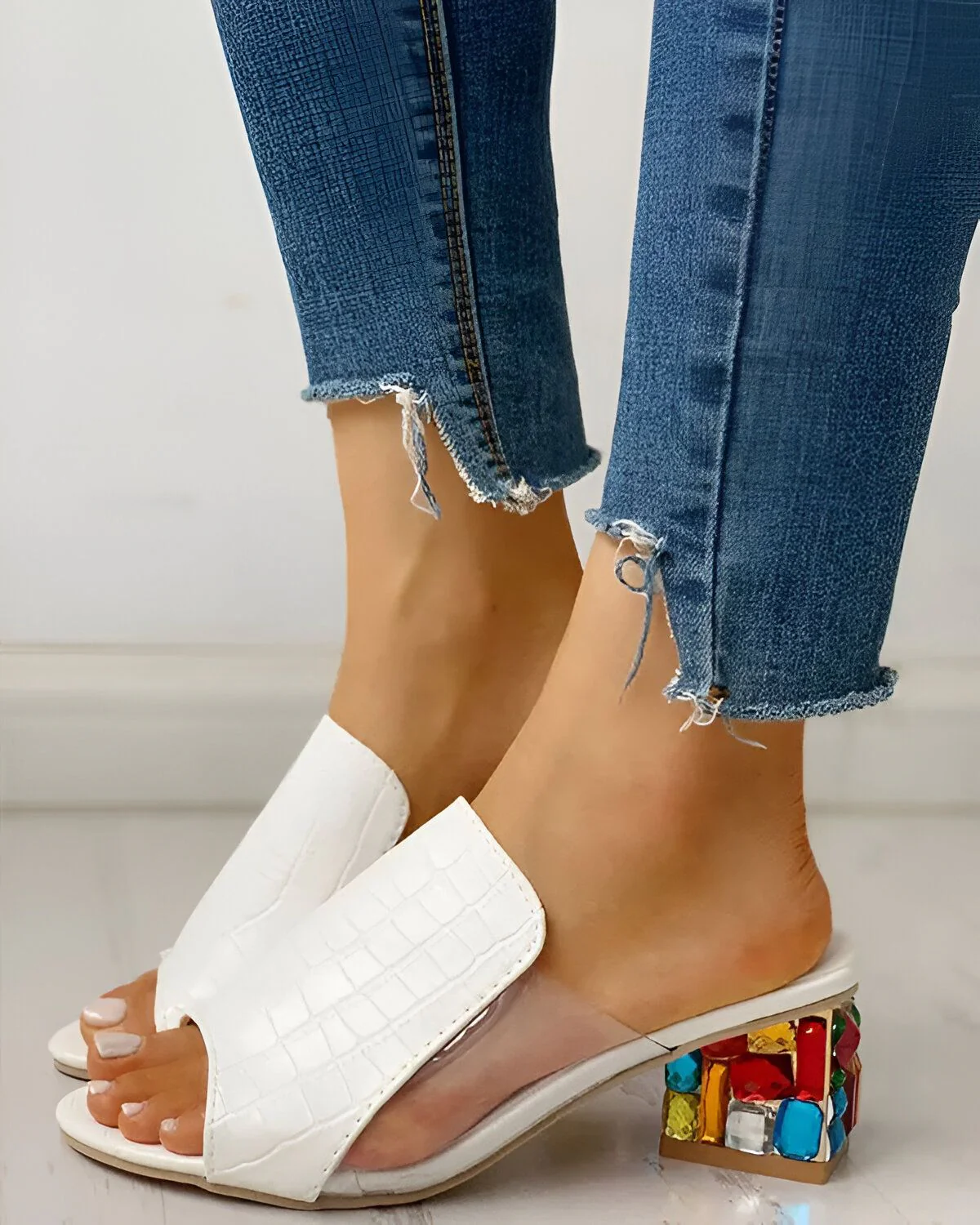 Ces talons épais à strass en relief croco sont bien plus que de simples sandales à talons. Ils incarnent l’essence même du chic et de l’élégance moderne. Conçus pour celles qui cherchent à allier style et confort au quotidien, ces sandales offrent un mariage parfait entre raffinement et décontraction.