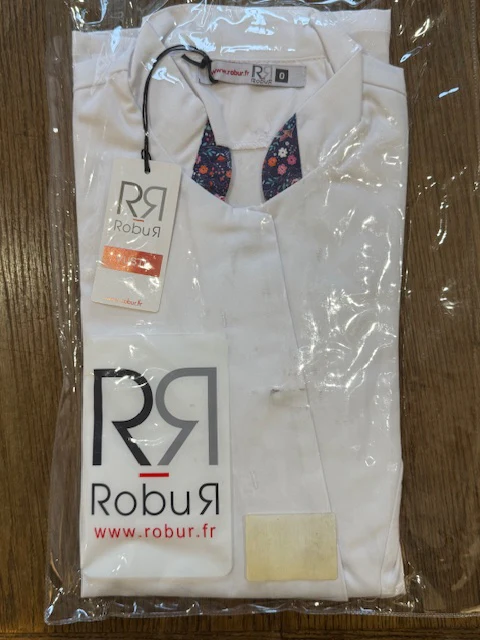 La veste de cuisine femme VUSTI de chez Robur est idéale pour affronter les fourneaux avec classe ! C’est une veste très confortable, dotée de découpes princesses et de fentes sur les cotés qui vous laissent libre de vos mouvements. Son tissu élastique et ses manches trois quarts garantissent un confort optimal.