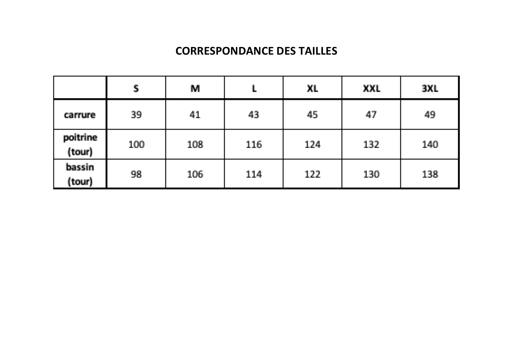 Vérifiez votre taile au moyen du tableau de correspondance des tailles