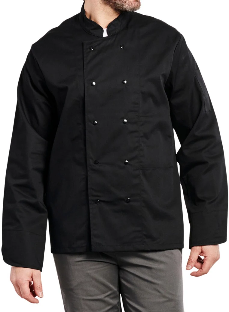 Veste manche longue à pression pour cuisinier, patissier ou boulanger PBV. Veste avec fermeture double boutonnage pression. Elle dispose de 2 fentes d’aissance dans le dos, 1 poche intérieure et 1 poche stylo.