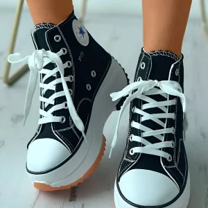 Baskets décontractées à plateforme à lacets et imprimé lettre color block