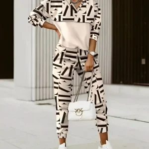 Ensemble haut à manches longues et pantalon à imprimé géométrique