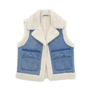Gisèle | Gilet Court Réversible à Col Revers et Poches pour Femme.