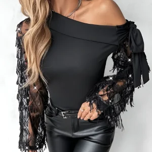 Haut à bretelles fines et encolure en V en dentelle guipure