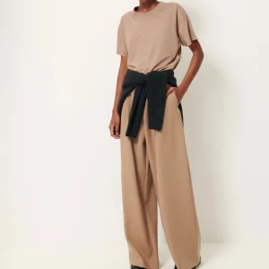 Pantalon taille haute avec empiècement en maille transparente entrecroisée