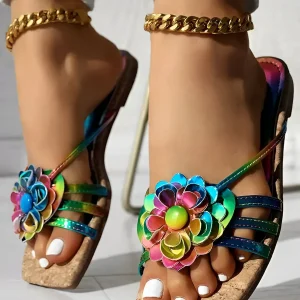 Pantoufles à bout carré à motif floral ombré