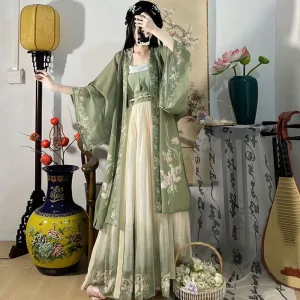 Robe Hanfu chinoise pour fille et femme, vêtements traditionnels chinois, ensemble vert 3 pièces