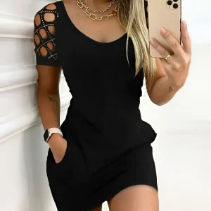 Robe moulante ajourée en dentelle contrastée à motif Argyle