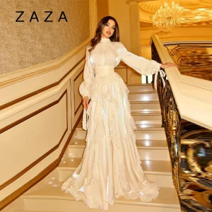 Robe longue à volants brillants de luxe, coupe trapèze, manches longues, ajustée, robes de soirée longues à lacets