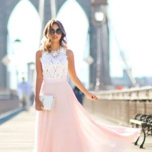 Robe longue fendue à épaules dénudées et ourlet volanté