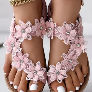 Sandales de plage à bride arrière et anneau d’orteil à motif floral