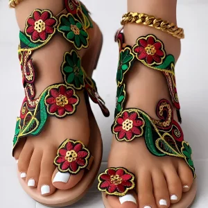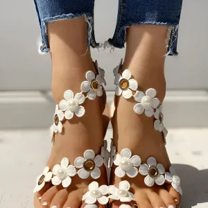 Sandales de plage à motif floral et anneau d’orteil