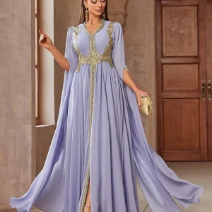 TOLEEN Luxe Broderie Arabe Soirée Longue Robe Femmes Col En V Applique Cape