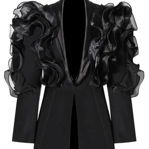 YERMORA Blazer décontracté à volants en maille épissée pour femme, revers à manches longues