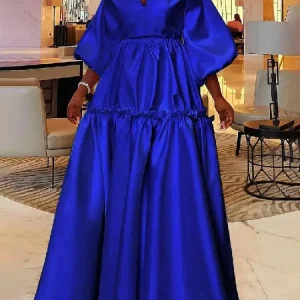 Yeezzi ample décontracté Maxi robes minimaliste couleur unie manches bouffantes Falbala robe de soirée
