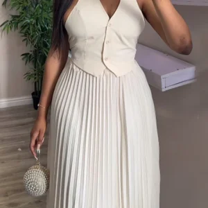 YOYO Ensemble Femme Sans Manches Débardeurs et Jupes Plissées
