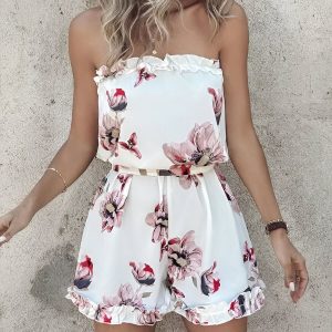 Barboteuse bandeau à imprimé floral et ourlet à volants