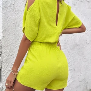 Barboteuse froncée à cordon de serrage et épaules dénudées