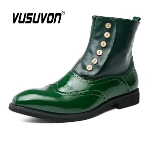 38-46 Hommes Bottes En Cuir Verni Automne Mode Brogue Chaussures Confortables