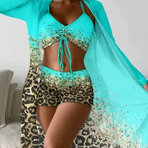 3 pièces Sexy imprimé Bikini femmes taille haute maillot de bain à couvrir