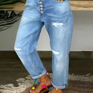 Robe Chemise en Jean Fente avec Poche de Grande Taille