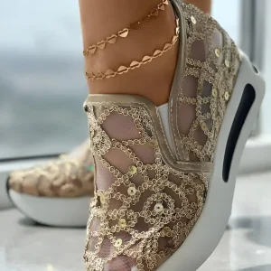 Mocassins à paillettes en maille avec décor de nœud papillon