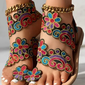 Sandales de plage bohémiennes extensibles à bride cheville et perles