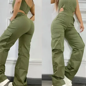 Combinaison cargo froncée à boucles et poches
